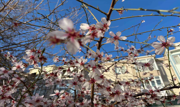 Babaeski’de hava sıcaklığının yaklaşık 20 dereceye yükselmesiyle birlikte "yalancı bahara" aldanıp çiçek açan badem ağaçları, pembe tonlarıyla adeta görsel şölen oluşturdu.