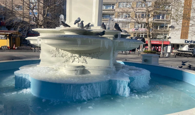 Cumhuriyet Meydanı’nda yer alan saatli havuz soğuk hava nedeniyle buz tuttu. Buz tutan havuzu gören vatandaşlar ise şaşkınlıklarını gizleyemedi.